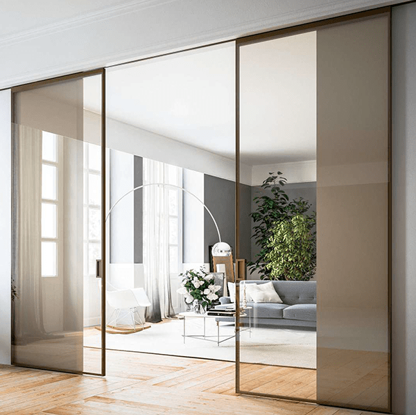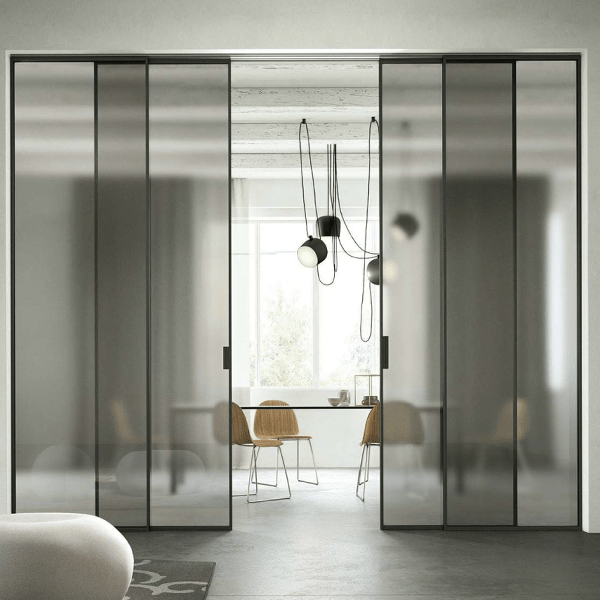 This type of Internal partition is very common in the trend. It has two glass sliders from each side which come together to enclose the decor with a super glide. It ensures privacy as well as excellent acoustics.ey shatter into small pieces.
